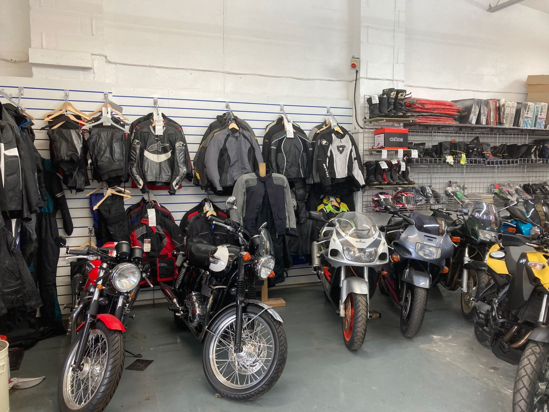 Bikes bought and sold, part-ex welcome. Helmets, clothing, boots, leather race suits, gloves, carbon fibre parts, tyres, pre-MOT, repairs & servicing